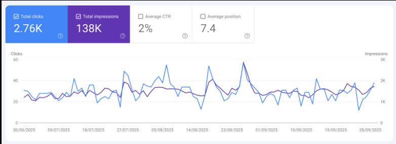 Google Search Console, to track your website search performance, traffic, clicks, and more. For example, finding keywords that land and ones that need fixing.